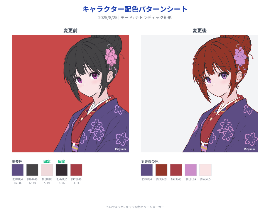 - 変更前後のイラストと主要色をまとめた配色パターンシートをPNG画像でダウンロード