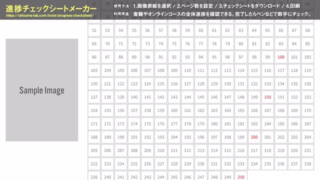 そんなわけで、表紙画像と開始ページ・終了ページを入力するだけで、A4横サイズのチェックシートを自動生成できるツールを作りました。