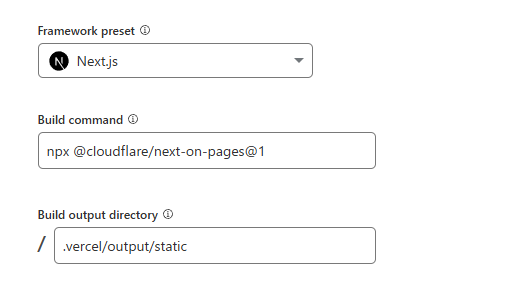 npm run buildやnext build)や「ビルド出力ディレクトリ」(例:.nextや.vercel/output/static。Next.jsのバージョンや設定により異なる場合があります)が自動的に入力されます。通常はこのままで問題ありません。